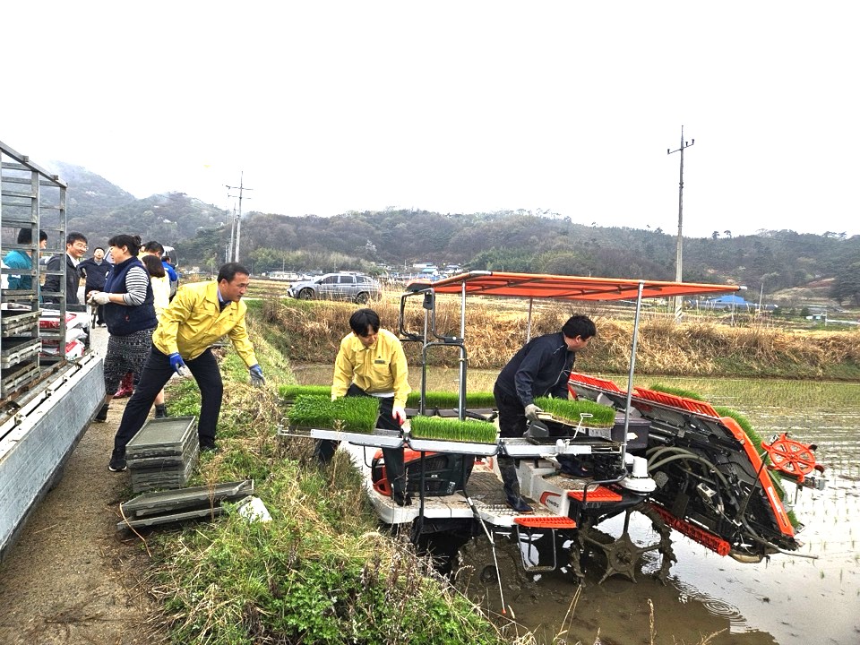 - 순창군이 10일 풍산면에서 올해 첫 모내기를 실시하며 본격적인 영농철의 시작을 알렸다. 이번에 심은 벼는 조생종(해담벼) 품종으로, 일반적인 모내기 시기보다 앞당겨 이앙함으로써 기후 변화에 대응, 조기 수확을 목표로 한다. 군은 이번 첫 모내기를 시작으로 6월 하순경까지 순차적으로 모내기를 마무리 할 계획이다. 특히 군은 23억 원 규모의 예산을 투입해 지역농협과 협력하는 벼‧콩 공동방제 지원 및 자가 방제 약제 지원 사업을 추진해 관내 농업인을 방제 작업에 우선 참여시켜 지역 경제 선순환을 도모하고 있다. 군 관계자는 “기후 변화 등 어려운 여건 속에서도 묵묵히 들녘을 지키는 농업인들의 노고에 깊이 감사드린다”며 “현장의 목소리를 최우선으로 반영해 농업인이 안심하고 고품질 쌀 생산에 전념할 수 있도록 실질적인 지원을 아끼지 않겠다“고 밝혔다. 한편 군은 안정적인 쌀 생산을 위해 지난 3월부터 온탕소독기 운영, 벼 육묘상 상자처리제 지원, 깨씨무늬병 예방 미량요소 지원 사업 등 선제적인 지원사업을 펼치고 있다.