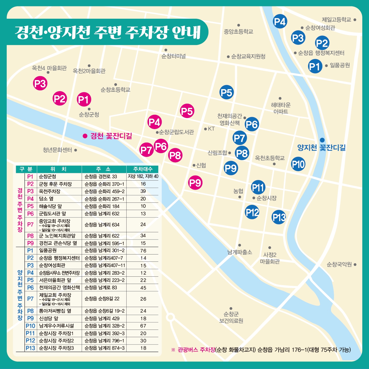 경천, 양지천 인근 순창군 무료 공영주차장 안내