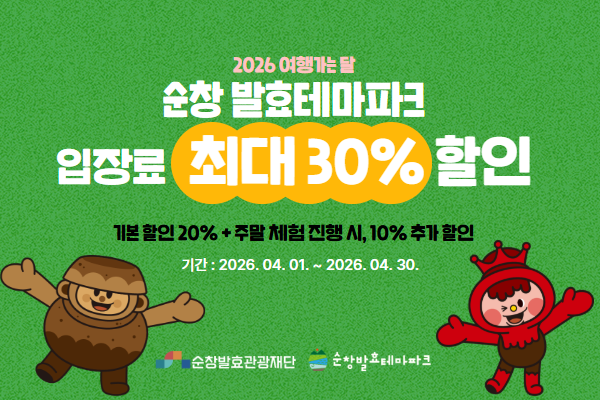 ◎ 내 용 : 2026년 4월 한 달 간, 순창 발효테마파크 모든 전시관 20% 할인 적용!