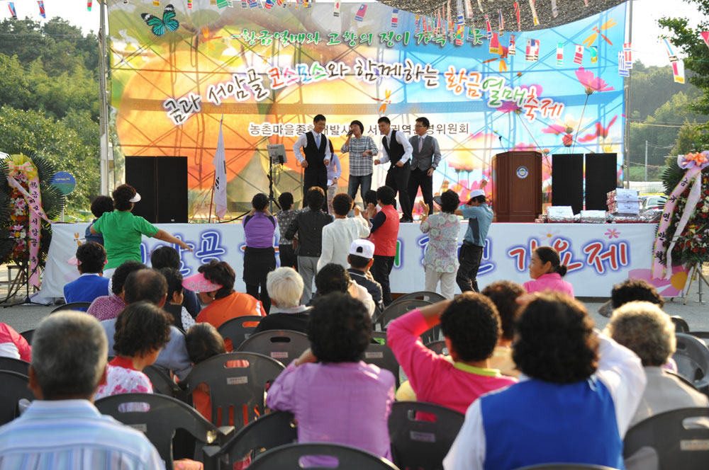 - 순창군 서암권역 농촌마을개발사업 운영위원회(위원장 김진상)에서 주최한 제3회 서암골 코스모스축제가 성황리에 펼쳐졌다. 지난 24일 금과면 일목마을 광장에서 7km 구간에 흐드러지게 피어있는 코스모스 꽃길 따라 가을의 풍요로움이 가득 담긴 이번 축제에는 신현승 군수 권한대행을 비롯, 군의원, 관내 유관기관 단체장, 향우, 운영위원, 지역주민 등 500여명이 참석했다. 이번 축제는 금과면 서암골(호치,장장,일목,이목,계전마을) 주민의 주도하에 마련된 축제로 향우들에게는 고향의 향수를 불러일으키고 도시민들에게는 농촌다움을 보여주며, 지역민들에게는 자긍심을 고취시키는 계기가 됐다. -2011. 9. 25-