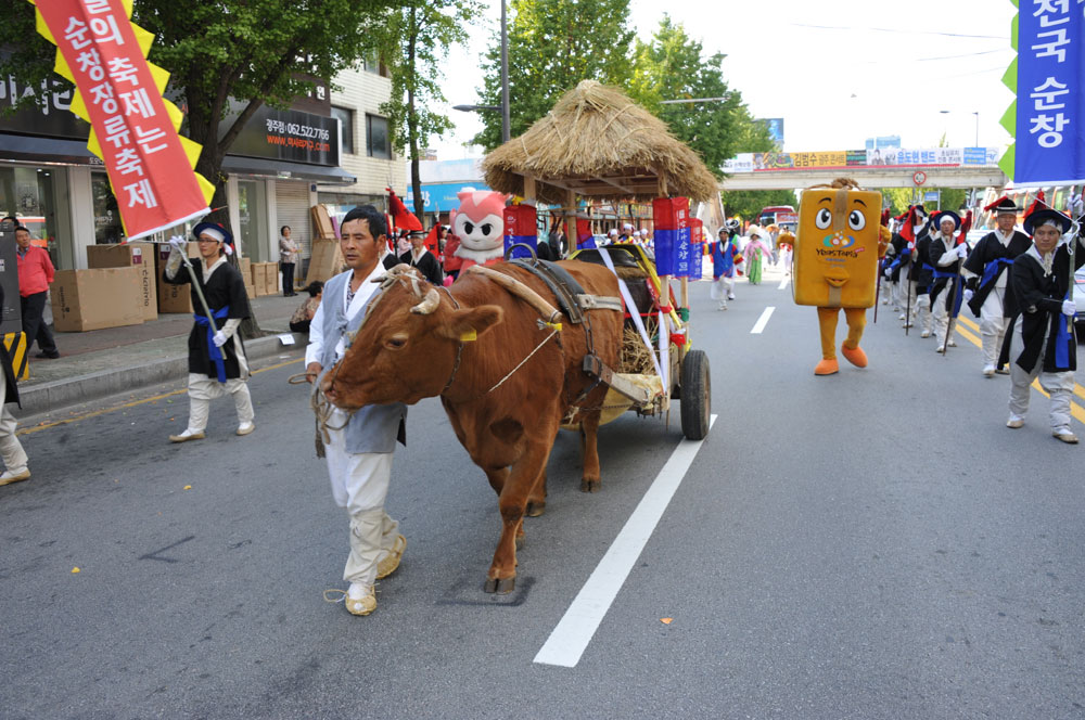 - 28일 광주에서 열린 ‘제8회 추억의 7080 광주 충장축제’ 전국 퍼레이드 경연에서 순창장류축제의 고추장 임금님 진상행렬단이 장려상과 함께 1백만원의 상금을 획득하는 쾌거를 거뒀다. 광주 충장축제는 지난 27일부터 10월 2일까지 충장로와 금남로 일원에서 열리는 축제로 순창군은 이날 개막식 거리 퍼레이드를 펼치며 관광객의 시선을 사로잡았다. 순창고추장 임금님 진상행렬은 고추장을 담은 장독대를 우마차에 싣고 장군의 지휘하에 호위무사와가 장군의 뒤를 따르며, 취타대, 농악대의 흥겨운 풍물소리와 장류캐릭터 등으로 충장축제의 하이라이트를 장식했다. -2011. 9. 29-
