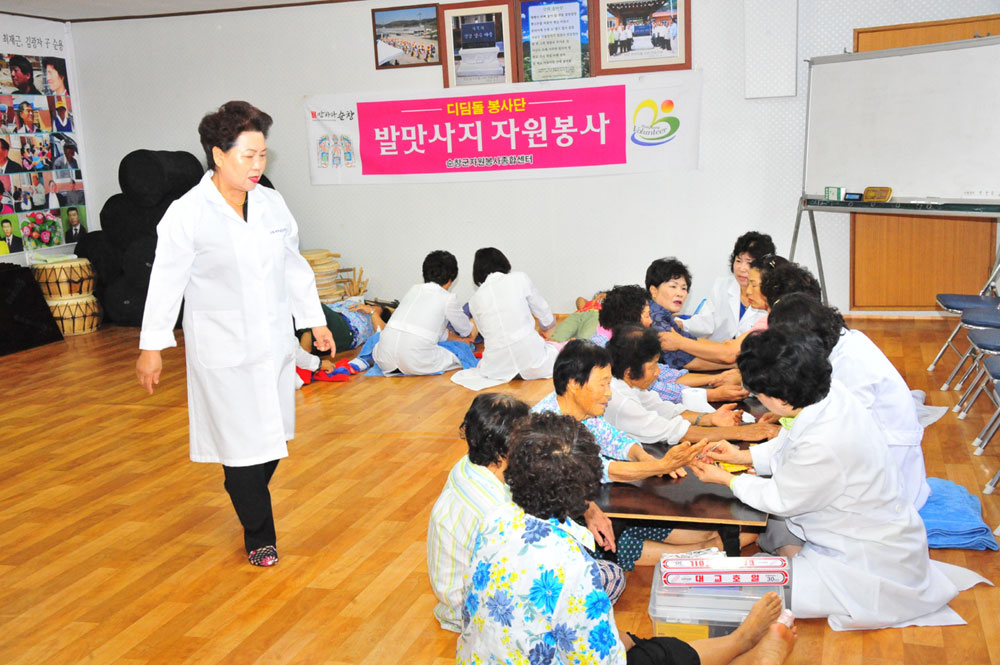 - 순창군자원봉사센터(소장 김영주)는 23일 적성면 지북리 어르신 90여명을 대상으로 찾아가는 맞춤형 이동봉사활동을 펼쳤다. 디딤돌봉사단(단장 김정희), 이미용봉사단(회장 장정순), 귀사랑봉사단(단장 지미라), 수호천사봉사단(단장 제정자) 등 전문봉사단 20여명은 단순한 노력봉사를 벗어나 기능과 기술을 이용한 전문봉사단을 구성해 이를 활성화시켜 다양한 영역의 자원봉사 활동을 펼치고 있다. -2011. 8. 23-