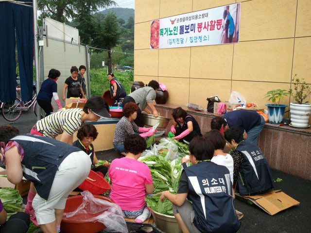 - 순창군여성의용소방대(대장 채진자) 대원 50여명은 25일 김치담그기와 밑반찬 만들기를 통해 이웃사랑을 실천하며 활발한 봉사활동을 펼치고 있다. 이날 봉사활동은 대원들이 김치와 멸치볶음을 직접 만들어 독거노인 20명을 선정해 세대별로 김치 3kg과 멸치볶음 700g씩을 전달했다. -2011. 8. 25-