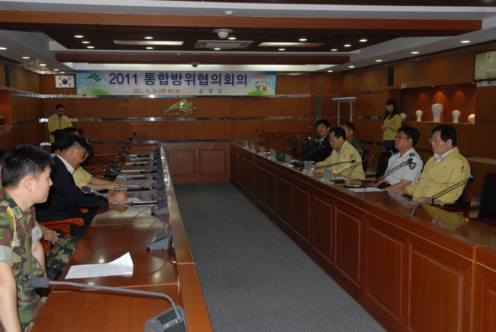 - 순창군은 ‘2011년도 을지/프리덤가디언 연습’에 따른 통합방위협의회의를 16일 군청 영상회의실에서 통합방위 위원과 실과소원단장 등 30여명이 참석한 가운데 순창군 통합방위협의회 의장인 신현승 군수 권한대행 주재로 열렸다. 최초상황보고를 겸한 통합방위협의회의는 을지/프리엄가디언 연습 개요 및 제7733부대 2대대의 올해 통합방위태세 추진방향에 대한 설명이 있었고, 이어 통합방위 주요 현안사항에 대한 논의를 하였다. -2011. 8. 16-