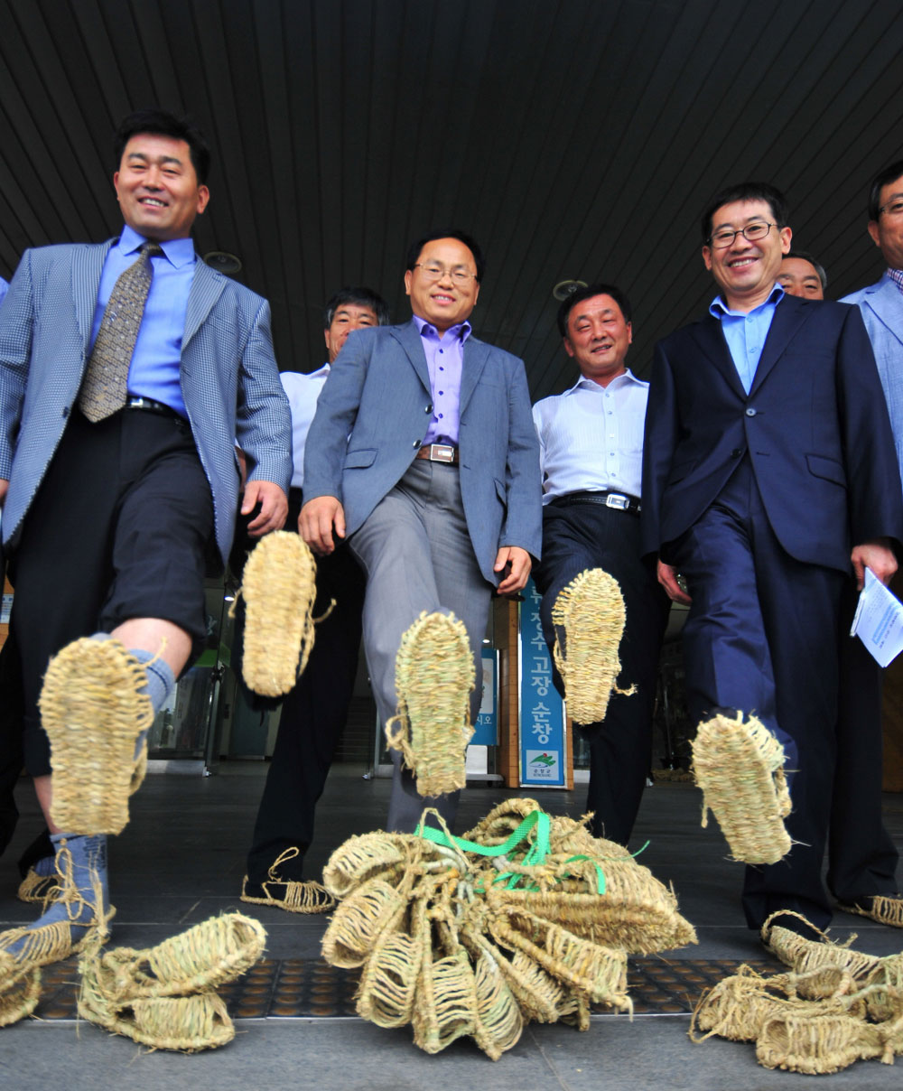 - 7일 순창군 신현승 군수 권한대행을 비롯한 간부공무원과 순창군의회 공수현 의장을 비롯한 군의원 등 30여명이 순창군청 현관에서 짚신 착용식을 갖고 에너지 절약과 건강을 위해 짚신신기를 권장했다. 이날 착용한 짚신은 지난 4월부터 6월까지 지역공동체일자리사업으로 추진한 짚풀공예팀 26명의 공예사가 만든 작품으로 공무원들이 솔선수범으로 공예품 사주기 운동과 더블어 펼쳤다. -2011. 7. 7-