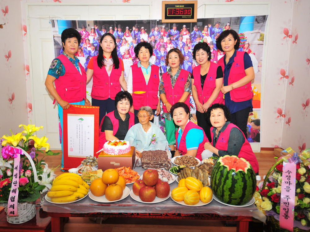 - 동계면 수정마을에서 사시는 홍롱님 할머니 백세 생일상 차려주기 행사가 여성단체협의회(회장 이남숙)주관으로 9일 수정마을회관에서 마을주민, 가족친지와 여성단체협의회 회원 등 80여명이 참석한 가운데 열렸다. 올해 건강하게 100세를 맞이하는 박할머니에게 천수패와 선물 증정식을 하고 박할머니 생신을 축하하기 위해 장마철 폭우에도 불구하고 멀리 가족친지와 마을주민들 대부분이 참석한 가운데 축하해 주었다. -2011. 7. 9-