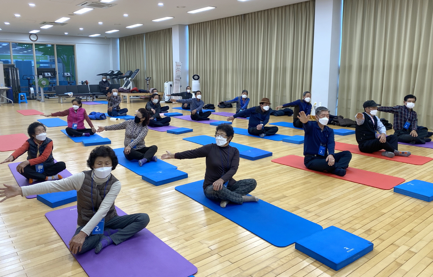 - 17일 보건의료원 3층 대회의실에서 지역주민의 신체단련과 심신안정을 위해 운영한 ‘한의약 기공체조교실’수료식을 가졌다. 한의약 기공체조교실은 노년기의 건강유지와 기공수련을 통해 신체의 기를 높이고 신진대사를 원활하게 하여 삶의 질 향상에 기여해 왔다. 군은 올해 4월부터 11월까지 기공체조에 관심있는 지역주민 60명을 대상으로 주 3회에 걸쳐 20명씩 보건의료원 대회의실에서 국선도 강사를 초빙하여 운영해 왔다. -2021년 11월 17일-