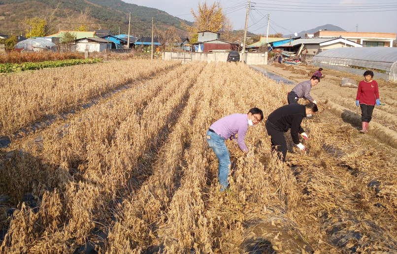 - 최복식 적성면장과 직원들이 18일 적성면 평남마을의 오씨 농가를 찾아 일손을 도왔다. 오씨가 가을 수확철을 맞아 가을걷이를 해야함에도 발목부상으로 인해 어려움을 겪자, 이 사실을 안 최복식 면장과 직원들이 한걸음에 달려가 수확을 도우며 구슬땀을 흘렸다. -2021년 11월 19일-