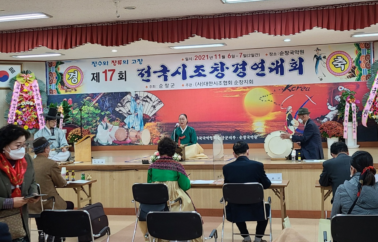 - 순창군이 제17회 전국 시조창 경연대회를 6일부터 7일까지 이틀간 순창국악원에서 개최했다. 순창군이 주최하고 사단법인 대한시조협회 순창지회가 주관한 이번 대회는 코로나19로 인해 무관중으로 개최됐다. 이번대회에서 영예의 대상부 장원은 김혜경씨, 최우수상은 조공순씨, 우수상은 이우창씨가 차지했다. -2021년 11월 08일-