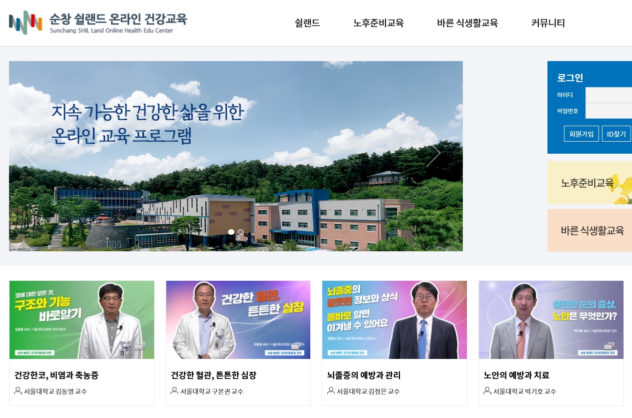 - 순창군이 코로나19의 지속적인 확산세를 감안해 지난 일부터 누구나 손쉽게 양질의 강의를 들을 수 있도록 우수한 강사진과 알찬 프로그램으로 구성된‘비대면 온라인 교육’을 본격 개강했다. ‘순창 쉴랜드 온라인 건강교육’으로 진행되는 이번 교육은 9월 17일까지, 서울대학교 의과대학 조비룡 교수를 비롯해 총 6명의 강사진이 참여하는‘노후준비교육’과 당뇨 예방을 위한‘바른식생활교육’으로 구성됐다. -2021년 8월 17일-