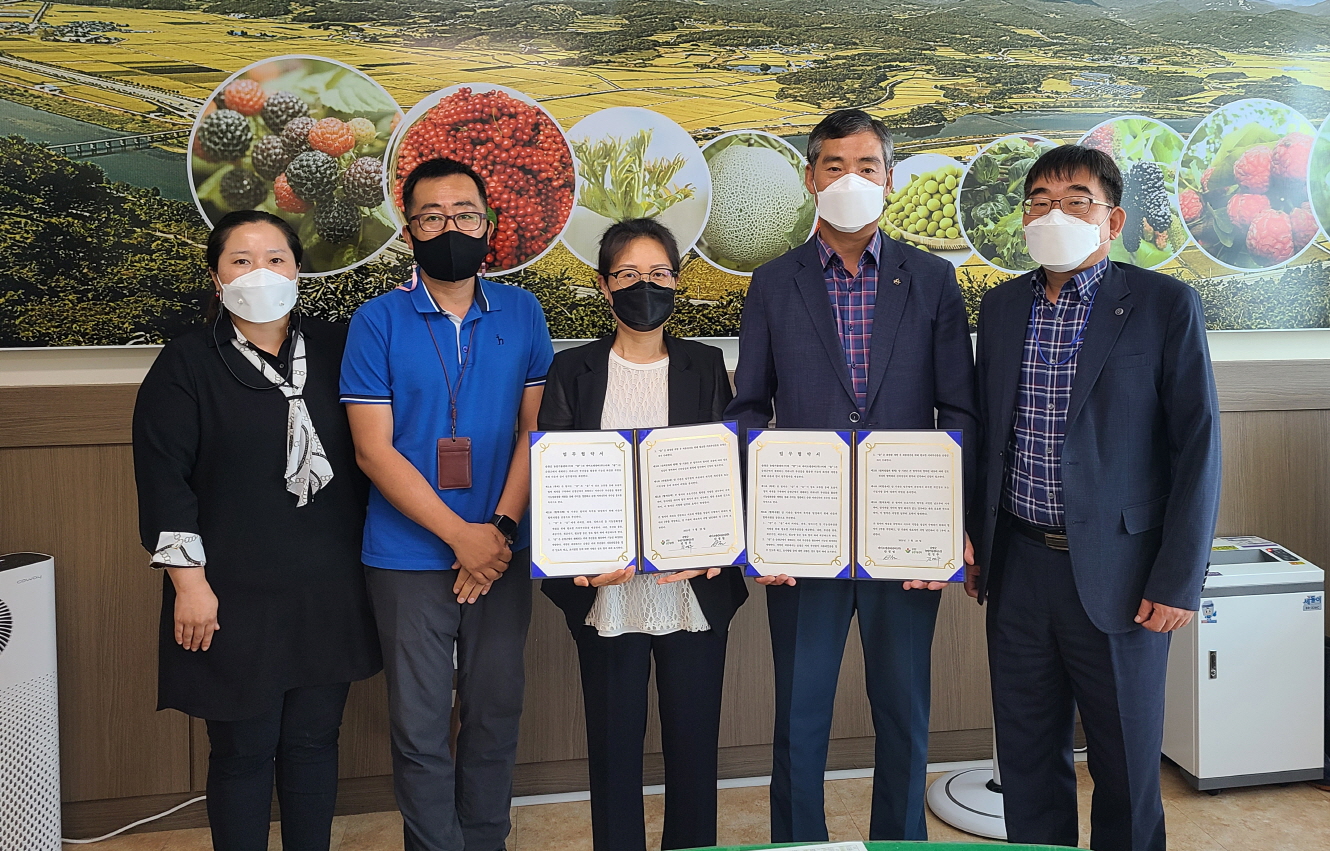 - 농업기술센터에서 바이오앤슈티(주)와 커피나무 부산물을 활용한 기능성 화장품 개발을 위한 업무협약을 체결했다. 이날 협약식에는 순창군농업기술센터 진영무 소장과 바이오앤슈티(주) 안정엽 대표 등이 참석했다. 이날 협약으로 순창군농업기술센터는 앞으로 과학영농실증포에서 재배하고 있는 커피 잎과 과육, 실버스킨 등 커피 부산물을 제공하고, 바이오앤슈티(주)는 이를 활용해 미백 및 주름 개선 화장품을 개발키로 했다. -2021년 7월 26일-
