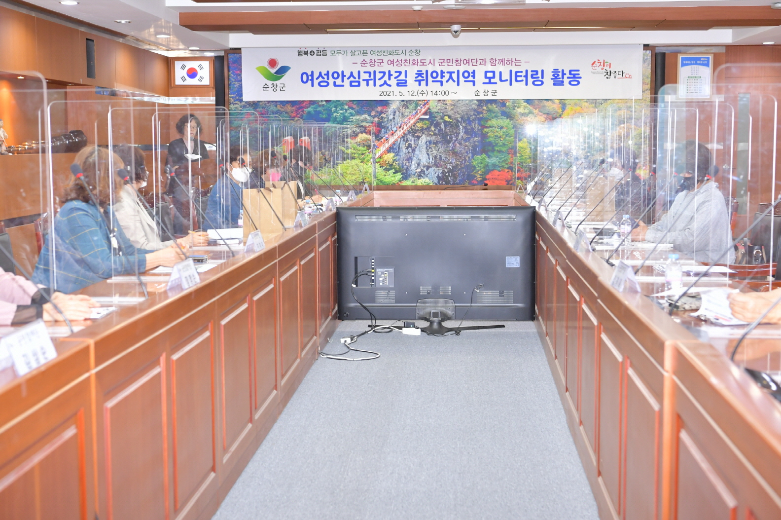 - 순창군 여성친화도시 군민참여단이 12일 여성 안심 귀갓길 모니터링 활동을 가졌다. 이날 군민참여단은 군청 2층 영상회의실에서 여성친화도시에 관한 교육을 들은 후 3개조(5인1조)로 팀을 나눠 관내 원룸 밀집지역 및 어두운 골목길 위주로 △사각지대 유무 △가로등 설치 유무 △안전시설물 설치 유무 등에 대한 모니터링을 실시했다. -2021년 5월 12일-