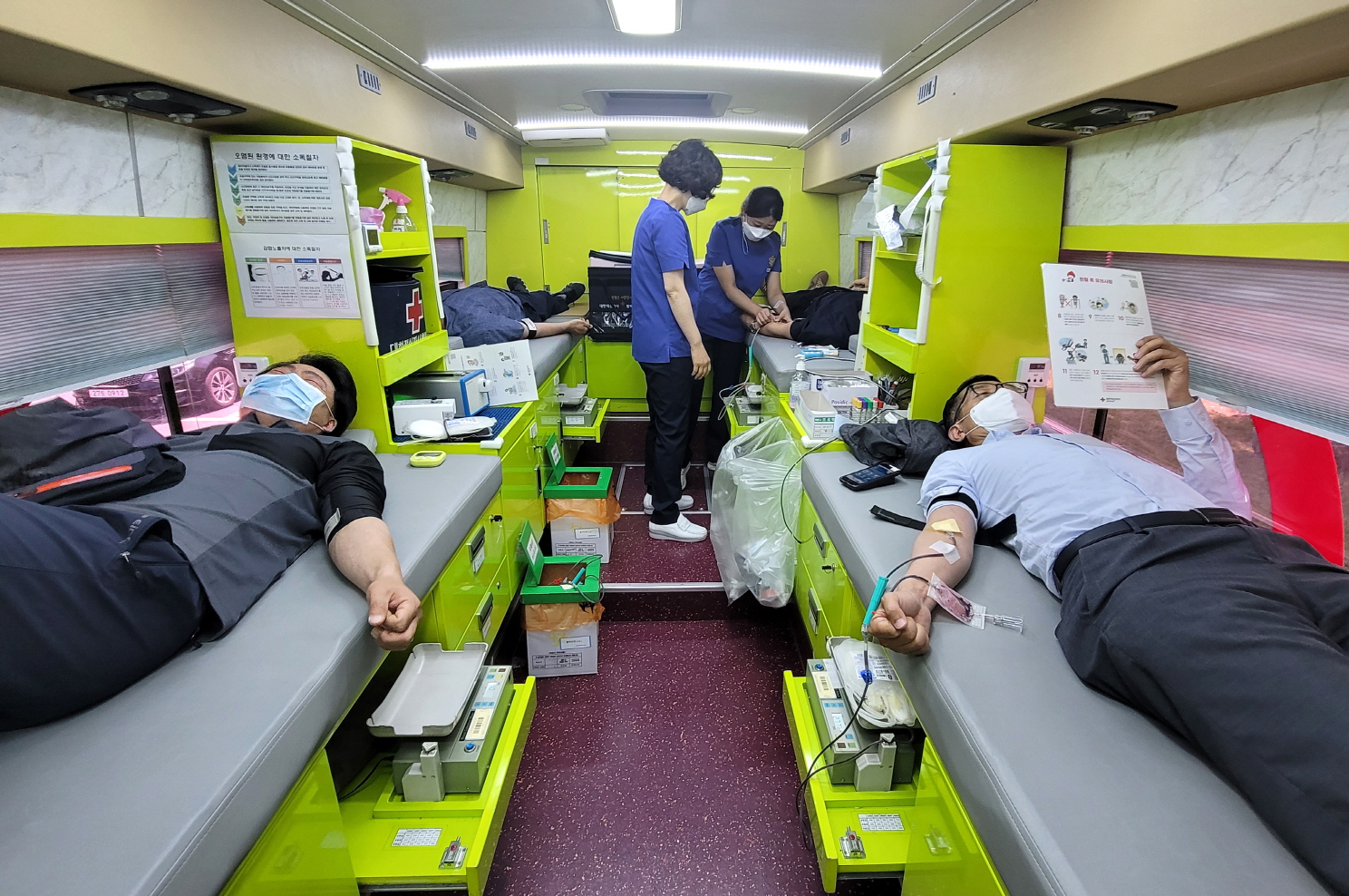 - 순창군 공무원들이 12일 순창군청 앞 광장에서 사랑의 헌혈 행사에 동참하며 이웃사랑을 실천하고 있다. -2021년 5월 12일-