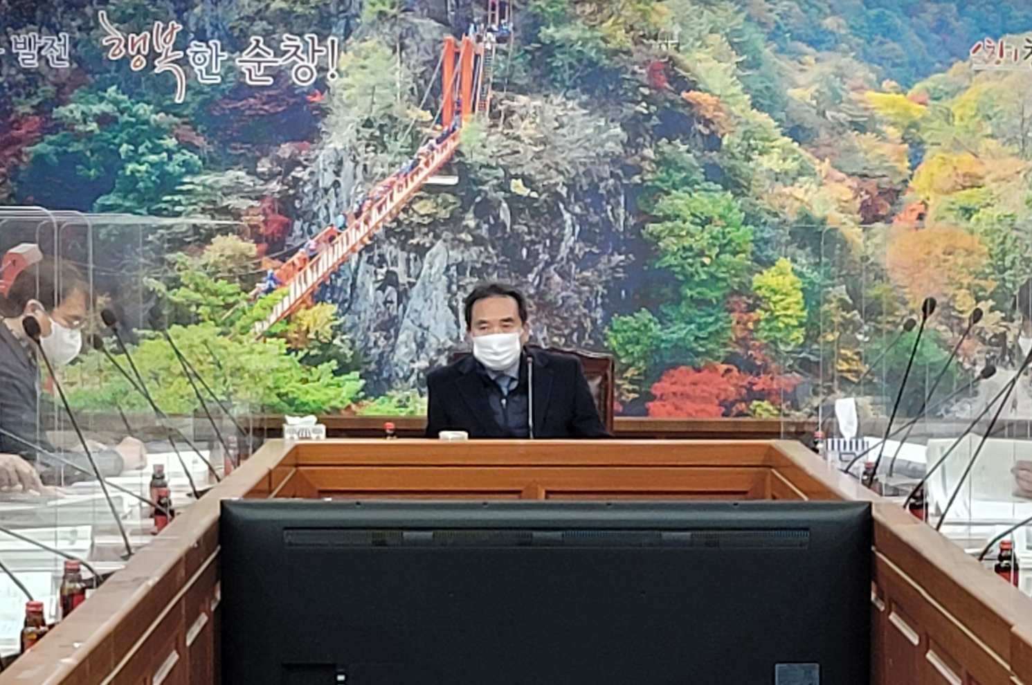 - 순창군은 8일 영상회의실에서 황숙주 군수 주재로 이남섭 부군수, 국‧실장, 부서장 등이 참석한 가운데 2021년도 주요업무 추진계획 보고회를 가졌다. 이날 보고회는 코로나19 상황을 고려해 기획예산실 및 행정복지국, 경제산업국, 직속기관 및 사업소 등 시간대를 분리해 최소한의 인원만 참석했다. 부서별 세부추진계획에 대한 보고와 예상되는 문제점을 점검하고 합리적인 해별방안을 모색하는 방식으로 진행됐다. -2020년 1월 8일-