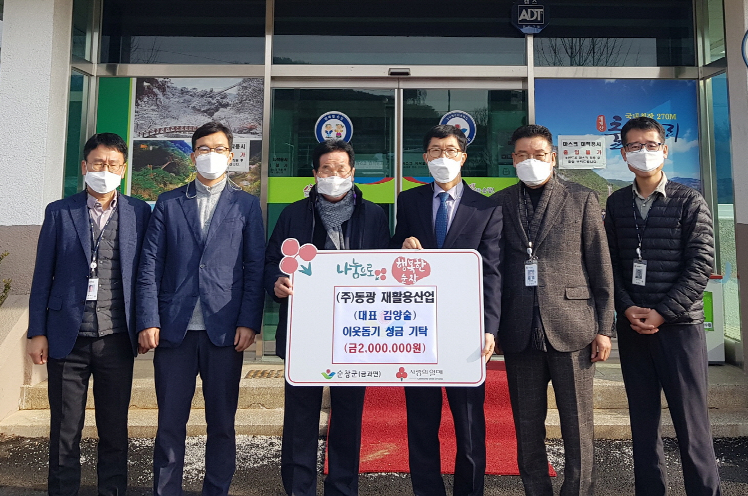 - 순창 금과면 동광재활용산업 김양술 대표는 5일 금과면 행정복지센터를 방문해 어렵고 소외된 이웃을 위해 써달라며 성금 200만원을 기탁했다. -2020년 1월 5일-