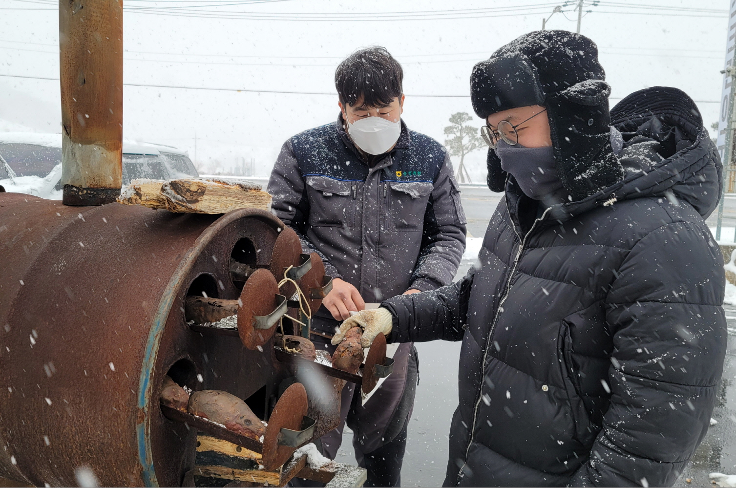 - 흰 눈이 펑펑 쏟아지는 30일 순창읍 방랑싸롱옆 셀프빨래방 앞에 군고구마 장수가 나왔다. -2020년 12월 30일-