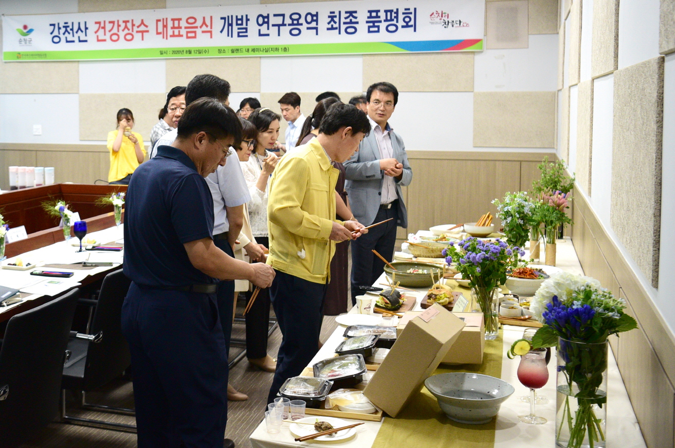 - 순창군은 지난 8월 도내 대학 교수 및 전문가 등과 협업을 통해 강천산 건강장수 대표음식 연구용역을 추진하여, 순창 10대 농·특산물을 이용한 청국장 활용음식, 약선음식(면역력 ·당뇨 ·고혈압), 힐링음식, 디저트 분야 등 4개분야 총 44종을 개발했다. 앞으로 순창군은 건강장수의 고장답게 건강장수 대표음식을 관내 음식점에 보급하여 순창을 찾는 관광객들의 입맛과 건강을 사로잡을 예정이다. -2020년 11월 25일-