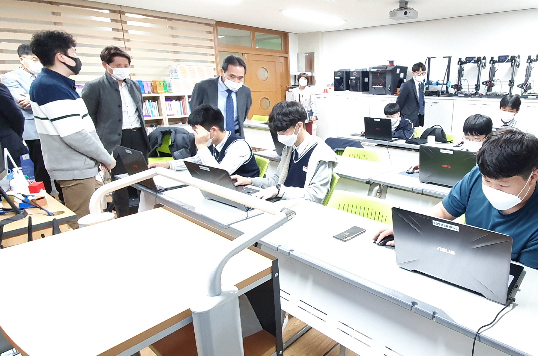 - 황숙주 군수는 중등 코딩 메이커반과 중등 목공 DIY 수업에 참여하고 있는 학생들을 직접 찾아 격려했다. 순창군은 교육지원청으로 예산을 지원해 순창발명교육센터(영재교육원 내)에서 진행하는 사업으로, 컴퓨터 코딩 및 3D 프린팅, 목공 DIY 교육 을 통해 창의융합형 인재를 양성하고 있다. -2020년 11월 20일-