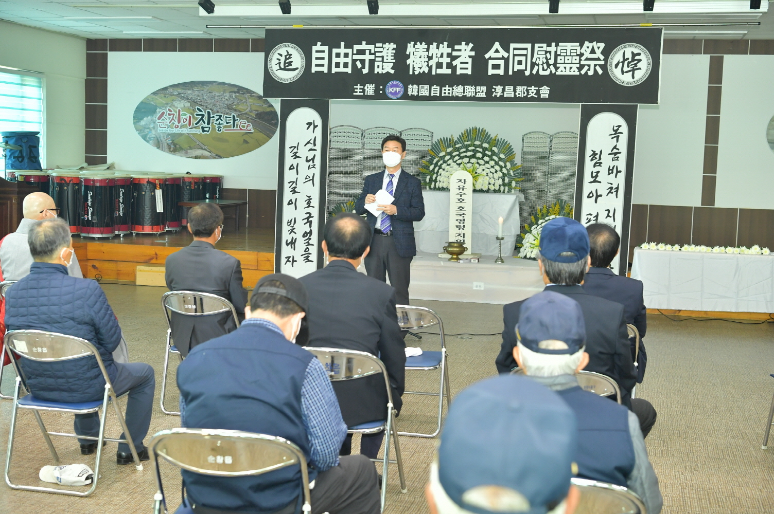 - 한국자유총연맹 순창군지회(회장 임학래)는 12일 순창읍사무소 회의실에서 자유수호희생자 합동위령제를 가졌다. 이번 행사는 전해성 순창부군수를 비롯한 유관기관 단체장, 희생자 유가족, 군민 등 60여명이 참석했다. 위령제는 풍남교회 기옥종 목사의 성경봉독과 장덕사 청암스님의 독경, 추도사, 조시낭독, 헌화, 분향 등의 순으로 진행됐다. -2020년 11월 12일-