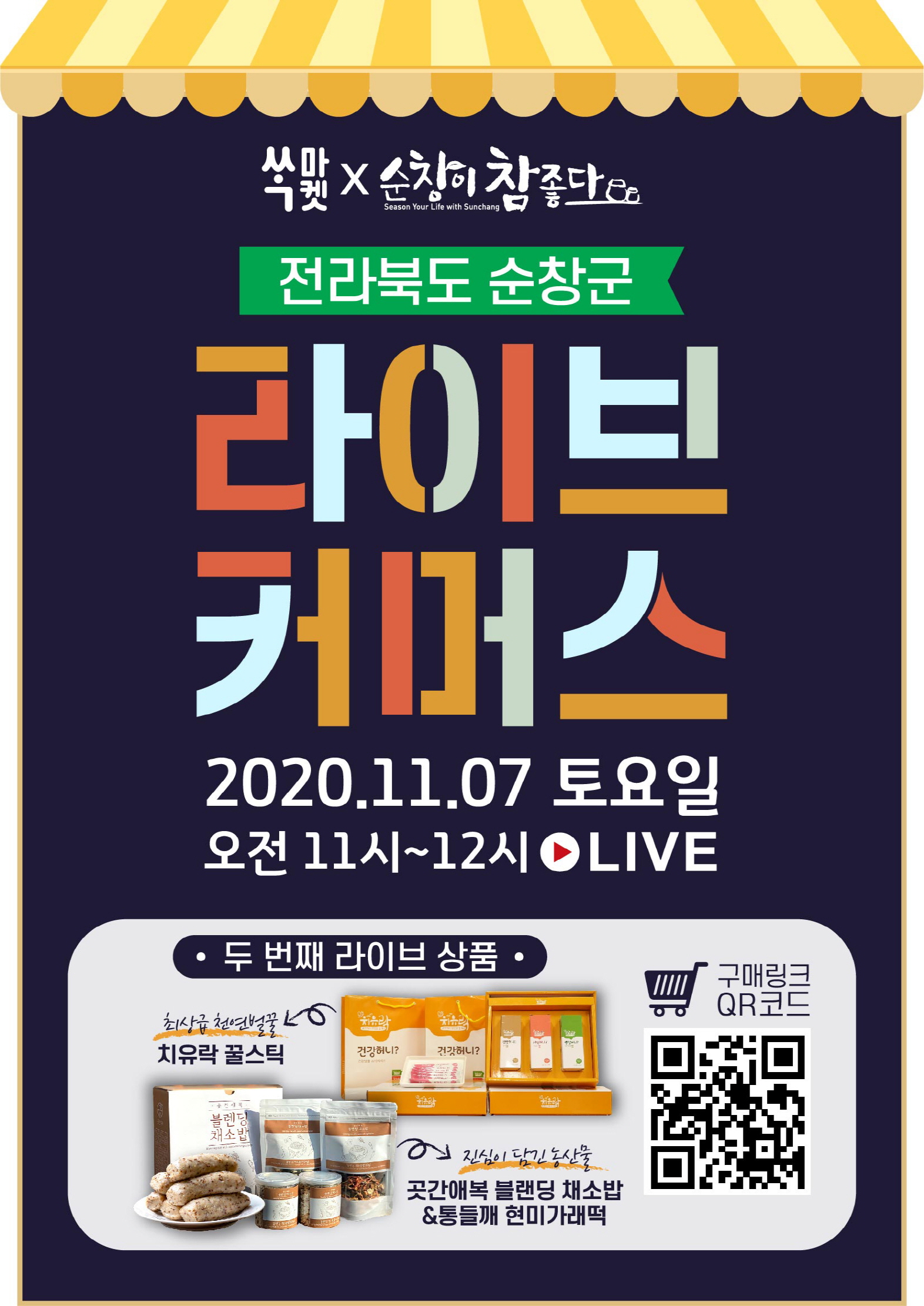 - 오는 7일 라이브 커머스를 통해 관내 농가들의 특산품 판매에 나선다. 이번에 열리는 라이브 커머스는 강천산 현장에 설치된 무대에서 진행되며 유튜브, 인스타그램, 카카오TV 등에서 동시간 생방송으로 진행된다. 이번에 판매되는 특산품은 꿀 스틱(복흥 가인농장), 통들깨 현미가래떡과 블랜딩채소밥(풍산 곳간애복) 등이다. -2020년 11월 03일-