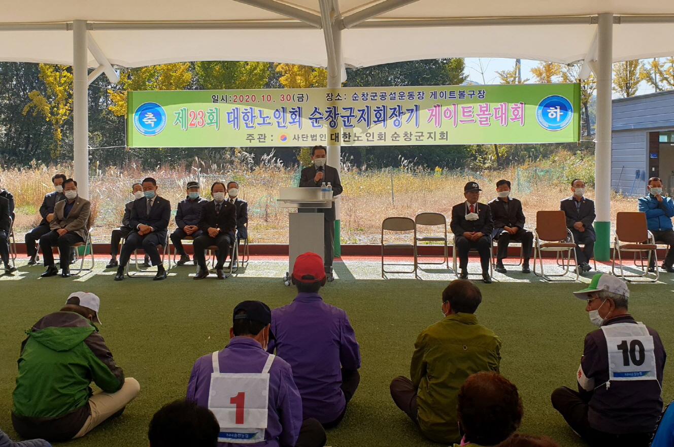 - 제23회 순창군노인회장기 게이트볼대회가 30일 순창공설운동장 게이트볼구장에서 열렸다. 이날 황숙주 순창군수를 비롯 신용균 순창군의회 의장, 최영일 도의원, 순창군의회 의원 등 30여명이 참석했다. -2020년 10월 30일-