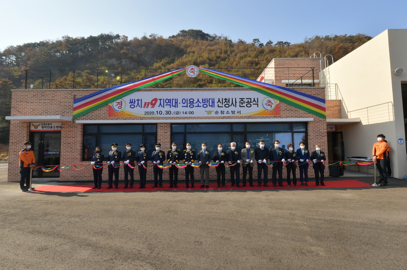 - 순창소방서(서장 김현철)는 30일 쌍치·동계119지역대를 신축·이전하고 준공식을 개최했다. 이날 준공식은 홍영근 전북소방본부장, 황숙주 순창군수, 최영일 전라북도의회 부의장, 신용균 순창군의회 의장을 포함한 주요 내빈과 주민 등 50여명이 참석한 가운데 진행됐다. -2020년 10월 30일-