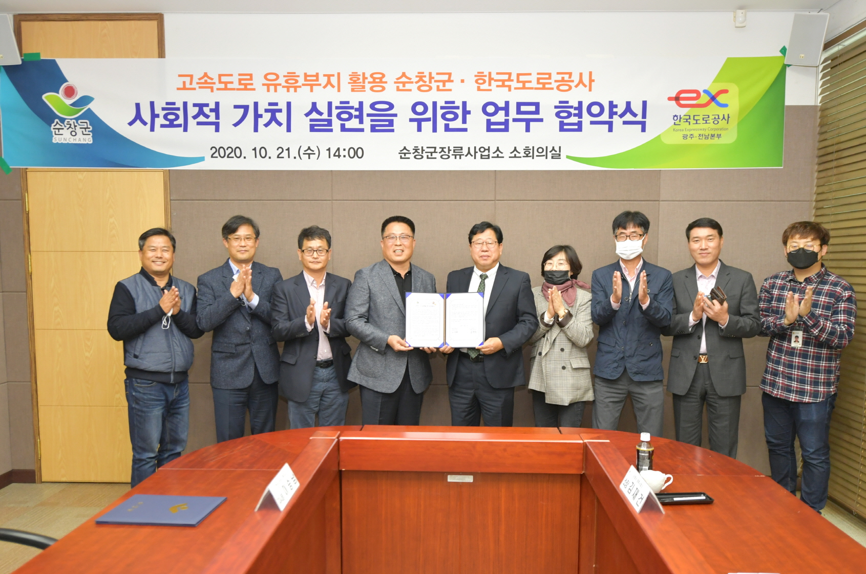 - 순창군이 21일 순창장류연구소에서 한국도로공사와 강천산휴게소 주변 고속도로 유휴부지를 활용해 공용주차장과 폐비닐 집하장 조성을 위한 업무 협약을 체결했다. 군은 고속도로 유휴부지를 무상으로 임차해 공용주차장 1,435㎡와 폐비닐 집하장 1동을 조성할 계획이다. -2020년 10월 22일-