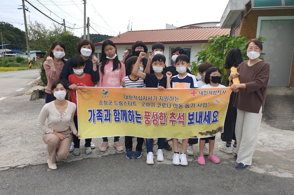- 순창군 드림스타트는 최근 코로나19 극복을 위한 대한적십자사 헌혈기부권 공모사업인 “굿바이 코로나 아동돕기 사업”에 선정되어 1000만원을 지원 받았다. 군 드림스타트는 25일 지원받은 예산으로 어린이내의, 양말, 송편, 옷소독 스프레이, 마스크 등을 구입해 취약계층 위기가정 180명 아동에게 전달했다. -2020년 09월 25일-