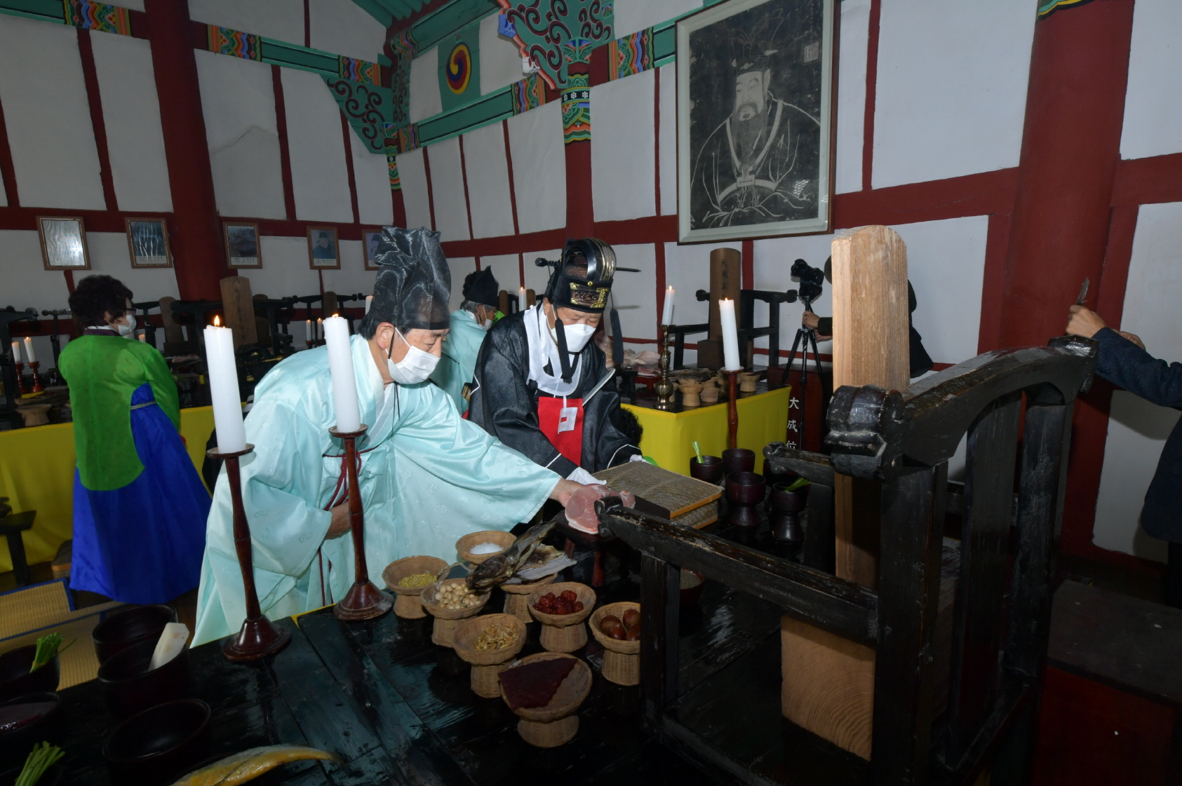 - 순창향교 (전교 유양희)는 21일 순창향교 대성전에서 유림 등 30 여명이 참석한 가운데 공자님을 비롯한 성현들의 학덕을 기리는 추기석전대제를 봉행했다 . 금년은 단기 4353년 , 공부자 탄신 2571년이 되는 해로 이날 초헌관에는 순창향교 유양희 전교 , 아헌관에는 김봉호 노인회장 , 종헌관에는 최길석 순창문화원장이 제관으로 봉행했다 .석전대제는 매년 음력 2월과 8월 초정일(初丁日)에 5성 2현 아국 18현의 뜻을 이어받아 제를 올리고 있다.순창향교 단성전에는 공자를 비롯하여 안자 ,증자 ,자사 ,맹자 5성과와 송조 2 현이 정호 ,주희 그리고 우리나라 18 현 (설총 ,최치원 ,안양 ,정몽주 ,김굉필 ,정여창 ,조광조 ,이언적 ,이황 ,김인후 ,이이 ,성혼 ,김장생 ,조헌 ,김집 ,송시열 ,송준길 ,박세채 )을 모시고 있다. -2020년 09월 21일-