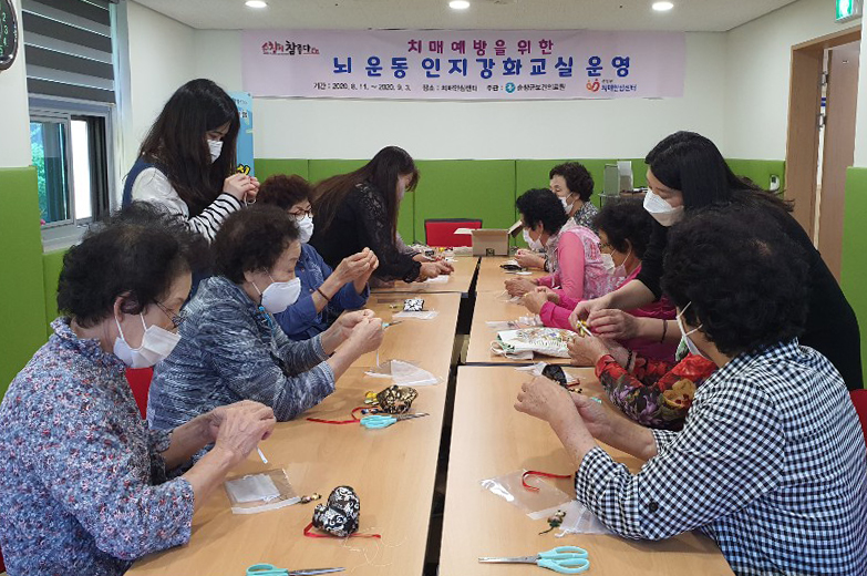 - 순창군 치매안심센터가 코로나19 확산으로 잠시 운영을 중단했던 뇌 건강 치매인지강화교실을 15일 재개했다. 뇌 건강 치매인지강화교실은 치매선별검사 결과 치매고위험군(인지저하자, 경도인지장애로 최종 진단받은 자)으로 판정된 15명을 대상으로 한다. 치매로의 진행을 예방.완화해 일상생활 활동에 필요한 기능을 유지시키기 위한 인지훈련을 진행한다. 문의 순창군 치매안심센터 (☎650-5271) -2020년 09월 15일-