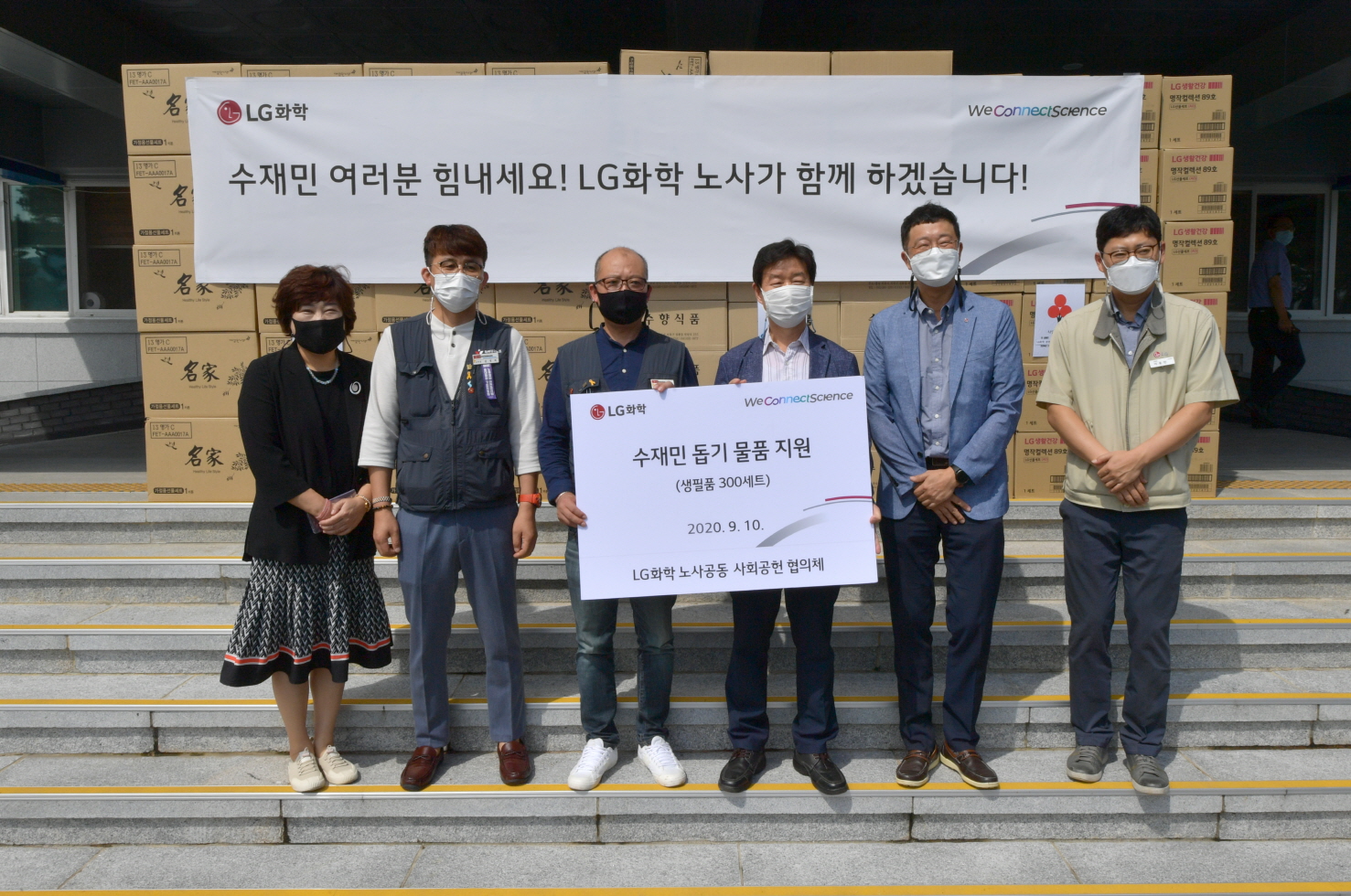 - LG화학(대표자 신학철)이 10일 순창군청을 방문해 수재민 구호물품을 전달했다. 이날 전달된 구호물품은 LG화학의 그린 케미 프로젝트의 일환으로, LG화학 노사 공동 사회공헌협의체가 임직원들의 십시일반 모은 성금으로 구호물품을 마련해 전달했다. 구호물품은 LG생활용품세트, 깨끗한나라 화장지, 수향식품 등 총 300세트로 1,200만원 상당이다. -2020년 09월 10일-