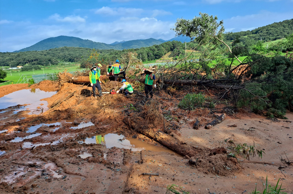 - 금과면 자율방재단(단장 김재구)은 28일 호우피해 현장을 복구하기 위해 방성, 장장, 내동마을을 찾았다. 이날 방재단원 20여명은 2개조로 나눠 복구현장에 투입됐다. 방재단은 전기톱과 중장비 등을 동원해 농경지와 축사 주변을 어지럽히던 임목과 토사를 말끔히 치워냈다. 후덥지근한 날씨 탓으로 방재단원들은 온 몸에 구슬땀을 흘려가며, 이날 작업을 마무리했다. -2020년 08월 28일-