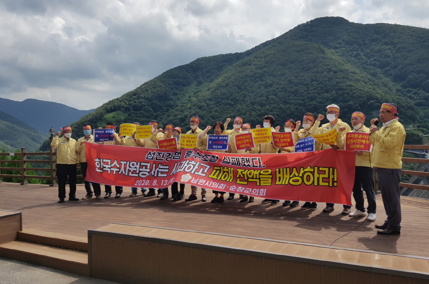 - 순창군의회(의장 신용균) 의원들은 13일 한국수자원공사 섬진강지사와 한국수자원공사 본사를 방문하여 섬진강댐 방류에 따른 순창군 피해에 대해 항의하고 재발 방지를 강력하게 요구했다. 집중호우가 예보되었던 지난 8일 수자원공사 섬진강지사는 당초 방류량인 초당 600톤 이내에서 2,500톤 이내로 변경 요청하여 적법한 승인 절차를 밟아 방류하였지만, 당초 물관리위원회에 최대방류량이 초당 600톤이라고 보고했던 것에 비해 3배가 많은 1,800톤을 방류하여 순창군 내 섬진강 하천 유역 주택・도로・농경지 등 침수 피해를 확산시켰다. -2020년 08월 13일-