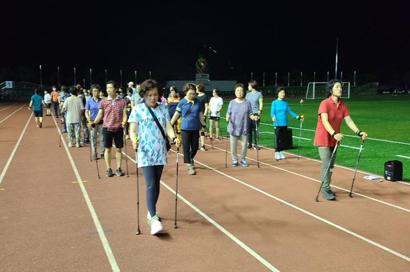 - 13일 순창군공설운동장에 모인 순창군민 80여명이 노르딕 스틱을 들고 걷기에 한창이다. 이들은 순창군보건의료원에서 운영하는 걷기프로그램인 “주경야동(晝耕夜動) 2기” 교실에 참가하기 위해 무더운 날씨속에서도 비지땀을 흘려가며, 운동장을 돌았다. 상반기에 이어 ‘주경야동 2기 교실’은 공설운동장에서 오는 10월 19일까지 매주 월요일과 목요일 저녁 7시 30분부터 9시까지 1시간 30분씩 운영되고 있다. 문의 순창군보건의료원 건강증진계(☎650-5231) -2020년 08월 13일-
