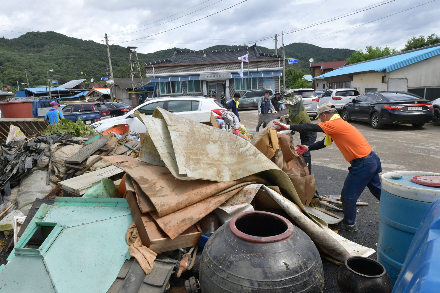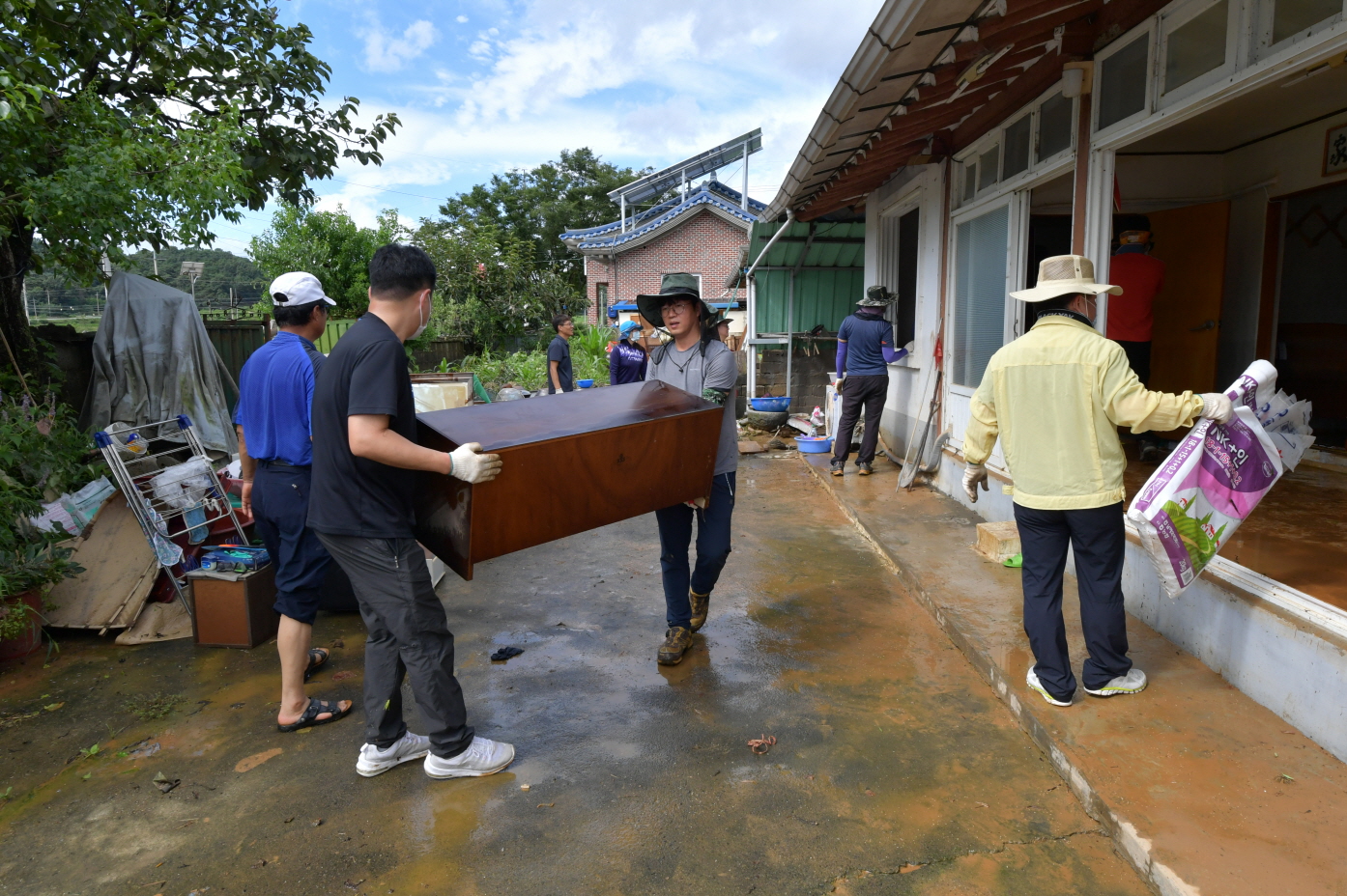 - 9일 수해복구 현장에 군인들의 참여도 돋보였다. 육군제1625부대 136명과 7733부대 2대대 25명, 7733부대 103연대 16명 등 177명이 참여해 1625부대는 적성 평남으로, 나머지는 유등 외이마을로 들어가 주택침수 정비에 최선을 다했다. -2020년 08월 09일-