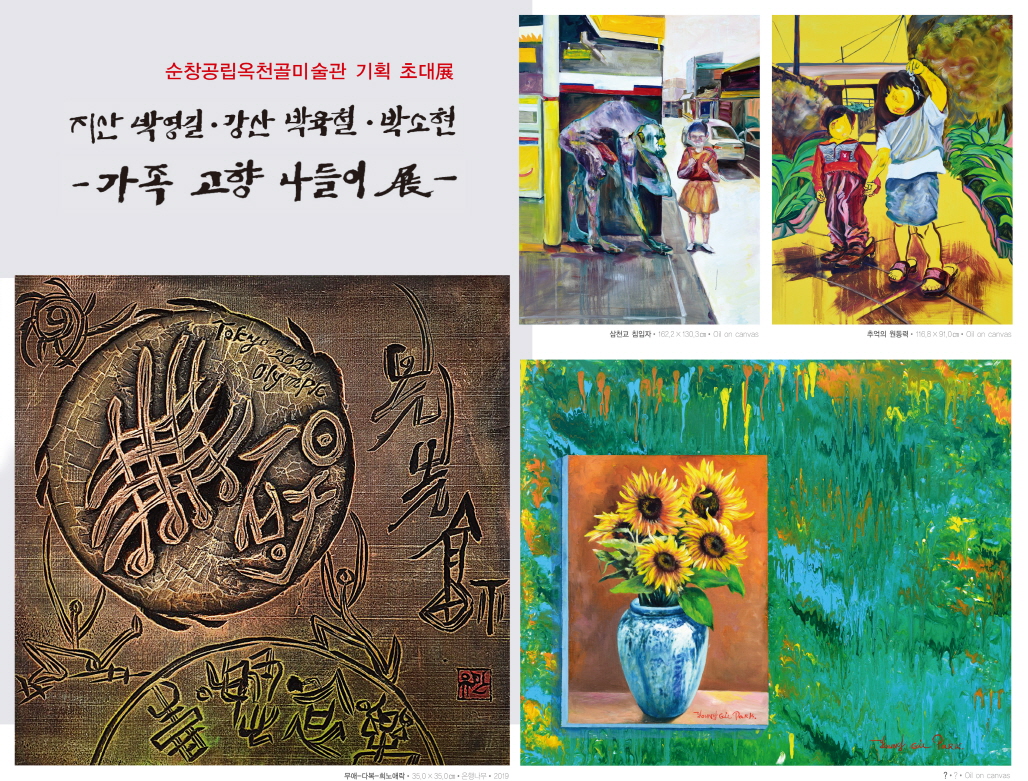 - 순창군이 오는 24일부터 옥천골미술관에서 ‘가족 고향 나들이 展’을 연다. 이번 기획전에 초대된 작가는 지산 박영길, 강산 박육철, 박소현 작가로 순창 구림 출신이다. 초대전은 오는 24일부터 다음달 30일까지 오전 9시부터 오후 6시까지 열린다. 관람료는 무료로 매주 월요일 휴관일을 제외하고 주중과 주말에 관람할 수 있다. -2020년 07월 21일-