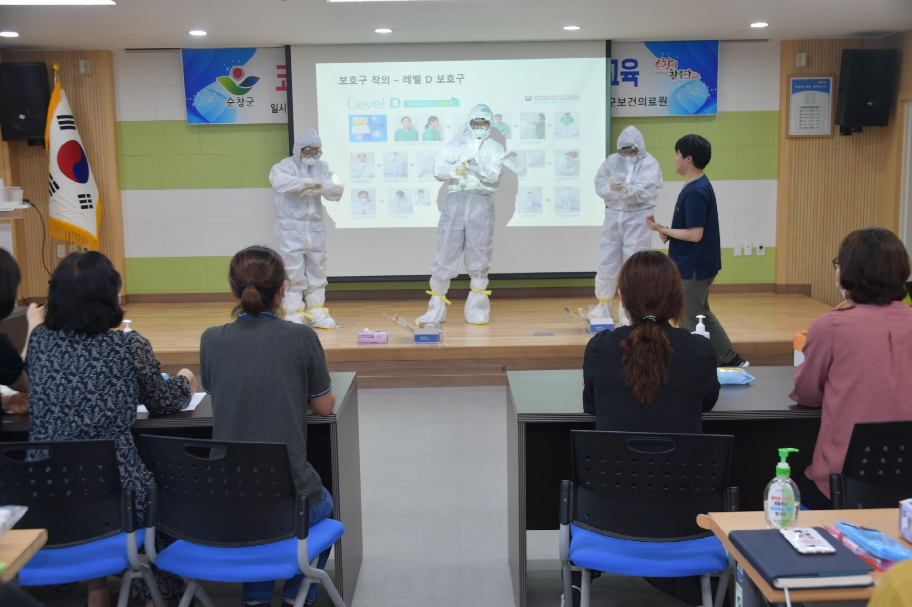 - 순창군보건의료원은 15일 보건의료원 대회의실에서 보건의료 인력 35명을 대상으로 코로나19 집단 감염 발생 대비 검체 채취 교육을 가졌다. 이날 교육은 최근 코로나19 재유행 조짐을 보이며 확산되자 의료인들의 자기보호와 대응 직무 역량을 높이고자 마련했다. 교육은 순창군보건의료원 공중보건의사 권용준 진단검사의학과 전문의가 진행했다. -2020년 07월 15일-