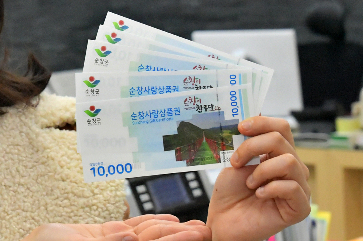 - 순창군이 코로나로 인한 경기침체를 회복하기 위해 시작한 순창사랑상품권 특별할인기간을 당초 6월에서 9월까지 연장하기로 했다. 지난해 8월 1일 상품권 발행을 시작으로 평시에는 7%, 명절에는 10% 할인율을 적용해 판매해왔다. 올해는 코로나19라는 특수한 상황으로 인해 지난 3월부터 이달 말까지 할인율을 10%로 확대해 6개월간 122억원이라는 판매액을 달성했다. 이런 성과는 군이 당초 계획했던 연간 10억원이라는 판매액보다 1200%이상 초과 달성한 수치다. -2020년 06월 29일-