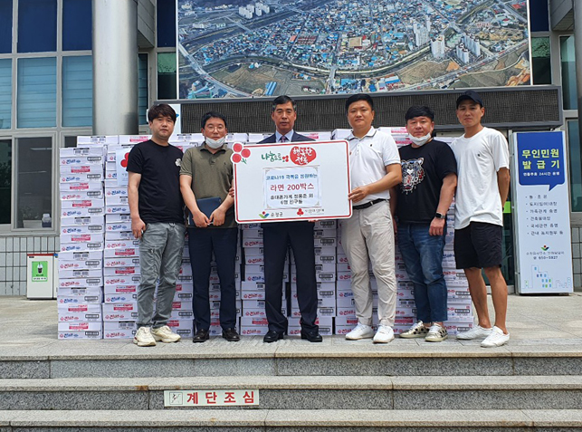 - 정용준 친구등, 라면 200박스 기탁