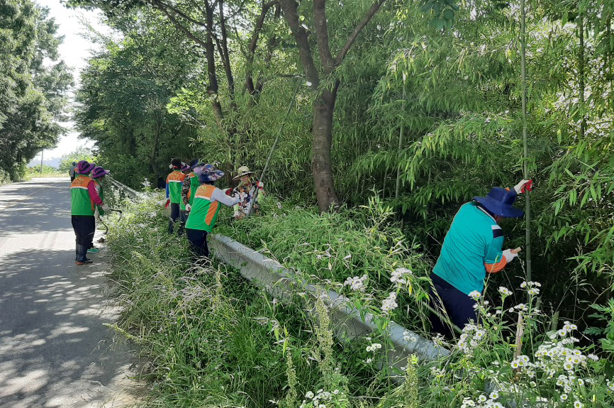 - 금과면 자율방재단(단장 김진구)은 15일 단원 50명은 기계톱 등 안전장구를 갖춰 사천 토사 제거 및 대나무와 유수에 지장을 초래하는 잡태목 등을 말끔하게 제거했다. -2020년 06월 15일-