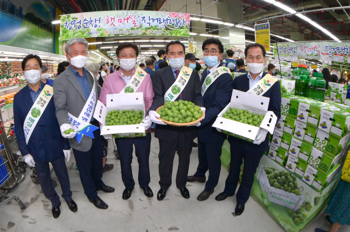 - 16일 황숙주 순창군수는 서울 창동 하나로클럽에서 매실 판촉행사를 가졌다. 이날 황숙주 군수를 비롯해 설태송 농업기술센터소장, 장경민 농협순창군지부장, 유광희 순창군조합공동사업법인 대표이사, 양준섭 동계농협장 등 20여명이 참여했다. 이번 행사는 오는 25일까지 11일간 진행된다. -2020년 06월 16일-