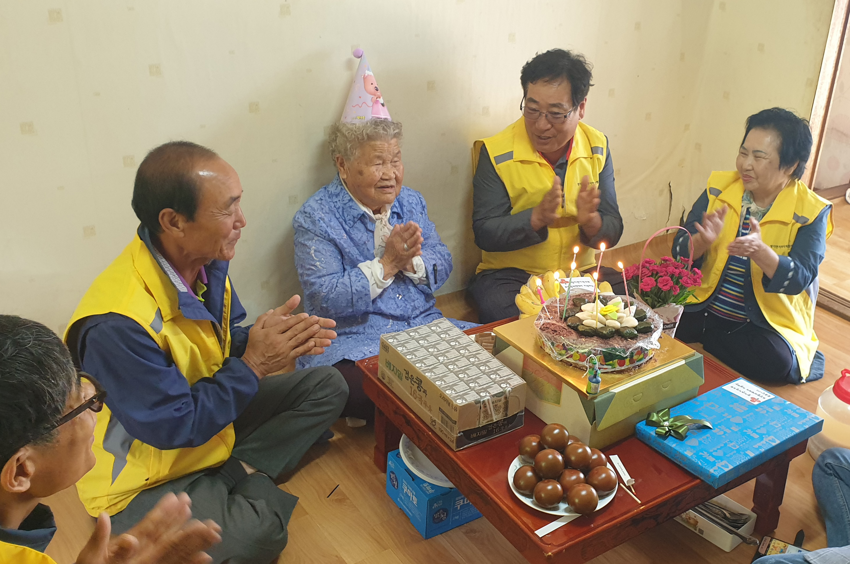 - 쌍치면 지역사회보장협의체는(위원장 송진원) 20일 쌍치면 내동마을 어르신 세대를 방문해 ‘찾아가는 생일 잔치사업’을 진행했다. 이 사업은 효(孝) 문화 확산 분위기 조성 및 풍토조성을 목적으로, 가족이 없거나 자녀의 왕래가 드물어 홀로 지내는 90세이상 홀몸노인 10분을 선정해 케익과 꽃다발, 선물 등을 구입해 방문, 전달했다. -2020년 05월 20일-