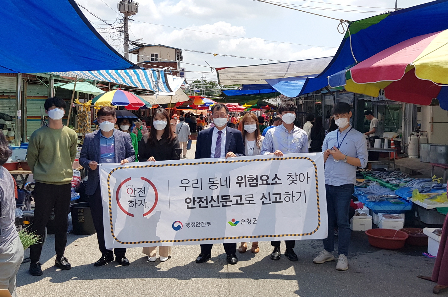 - 순창군은 21일 순창시장에서 코로나19 예방수칙 및 행락철 안전사고 예방 홍보를 위해 ‘제290차 안전점검의 날 행사’를 가졌다. 이번 행사는 안전보안관, 자율방재단 등 50여 명이 참여한 가운데 순창시장에 방문하는 군민들에게 손소독제와 코로나19 생활 속 거리두기 홍보물을 배부하고 풍수해 보험 등 물놀이 안전사고 예방수칙을 안내했다. -2020년 05월 21일-