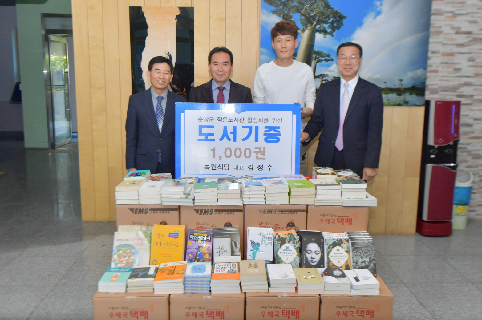 - 녹원식당(대표 김정수)이 29일 아동, 소설, 교양 분야의 도서 1000권(약 1500만원 상당)을 기증했다. 녹원식당의 김정수 대표는 순창군에 군립도서관은 물론 면 단위까지 작은 도서관이 조성되어 지역민이 일상생활 속에서 책을 읽고 소통하고 있다는 소식을 듣고, 이런 문화시설을 더 활성화하는 데 보탬이 되고자 기증을 결심하게 됐다고 한다. -2020년 04월 29일-