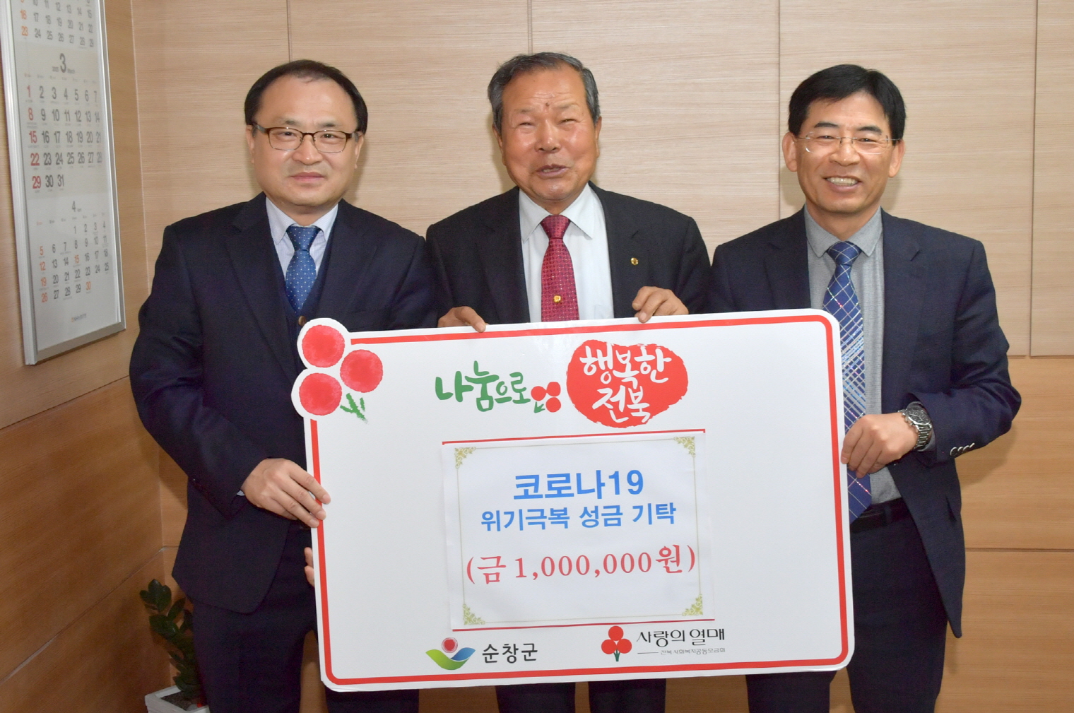 - 한국기독교장로회 순창읍교회(목사 김별배)는 27일 순창군청을 방문해 관내 어려운 이웃을 써달라며, 성금 5백만 원을 기탁했다. 이날 기탁식은 오전 10시 군수실에서 열린 가운데 황숙주 순창군수, 김별배 목사, 김태환 장로 등이 함께했다. -2020년 03월 27일-