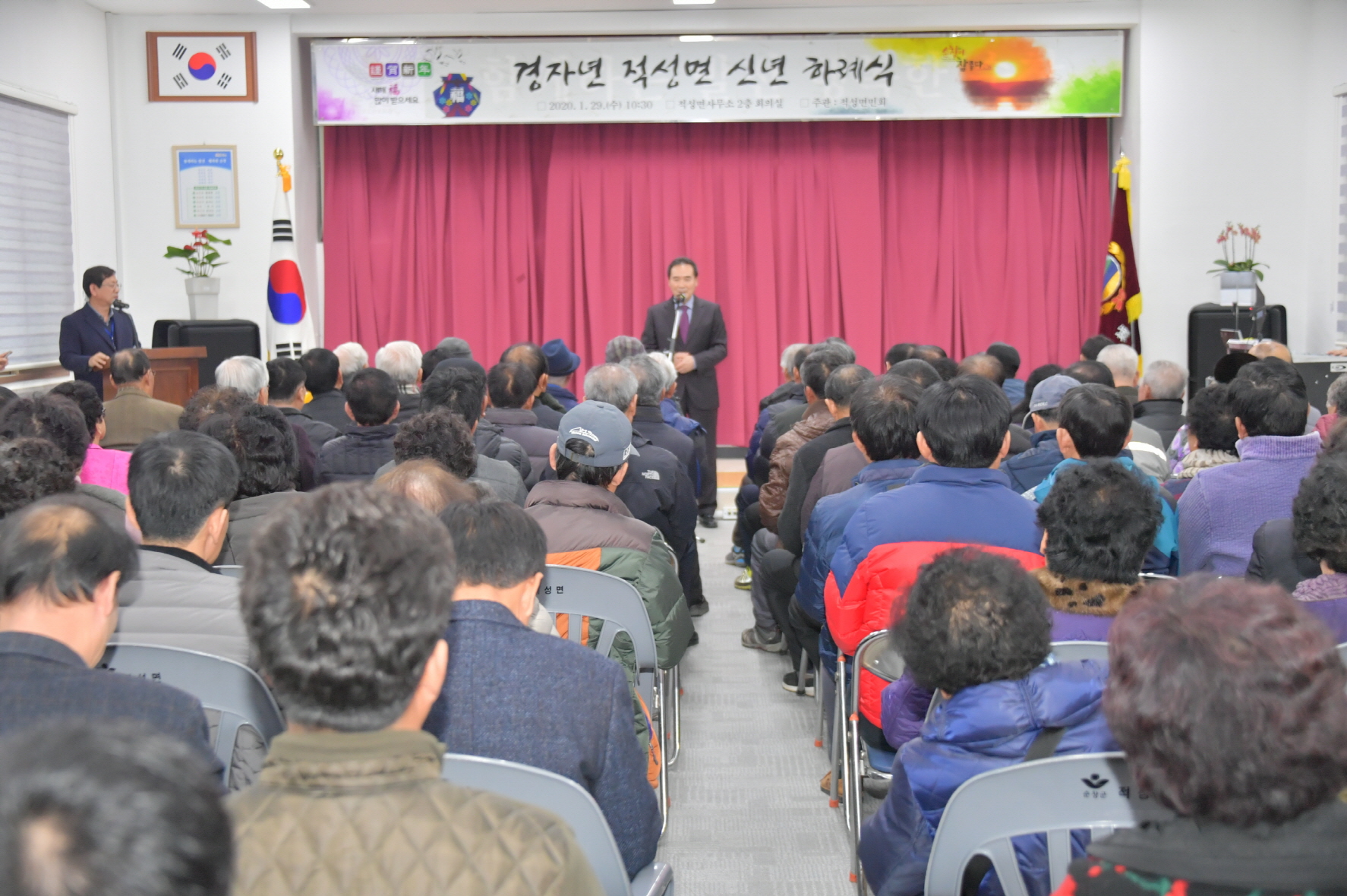- 적성면 면민회(회장 이정)는 29일 적성면행정복지센터 2층 회의실에서 지역 어르신 170여명을 모시고 무병장수와 만수무강의 하례를 드리는 `경자년 적성면 신년 하례식`을 가졌다. -2020년 1월 29일-