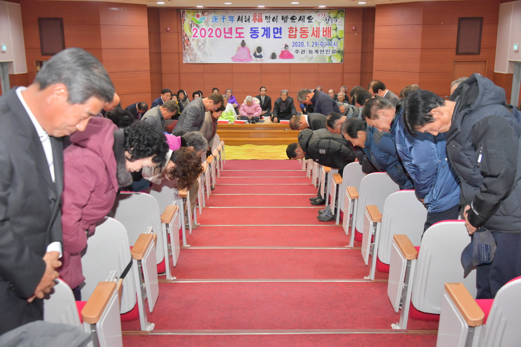 - 29일 동계면민회는 동계면행정복지센터 2층 회의실에서 어르신들 을모시고 동계면민의 화합과 무병장수를 기원하며 합동세배를 드렸다. -2020년 1월 29일-
