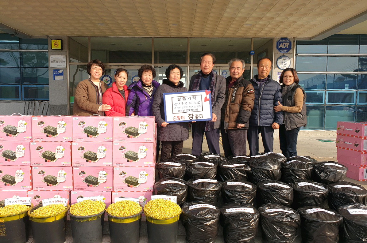 - 동계면 연꽃봉사회(회장 조은순)는 2020년 새해를 맞아 관내 경로당 36곳에 김과 콩나물을 전달하며 따뜻한 온정의 손길을 나눴다. -2020년 1월 6일-