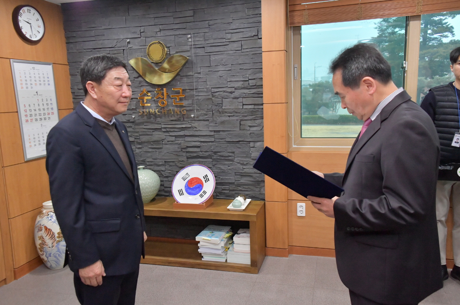- 황숙주 순창군수는 7일 군수실에서 신임 김석준 방재단장을 위촉했다. 5대 지역자율방재단장으로 선출된 순창읍 김석준(58) 방재단장의 임기는 2020년부터 3년간이다. 이날 위촉식에서는 황숙주 군수가 3,4대 복병갑 단장에게 그동안의 노고를 치하하며, 행정안전부장관 표창장을 전달했다. -2020년 1월 7일-