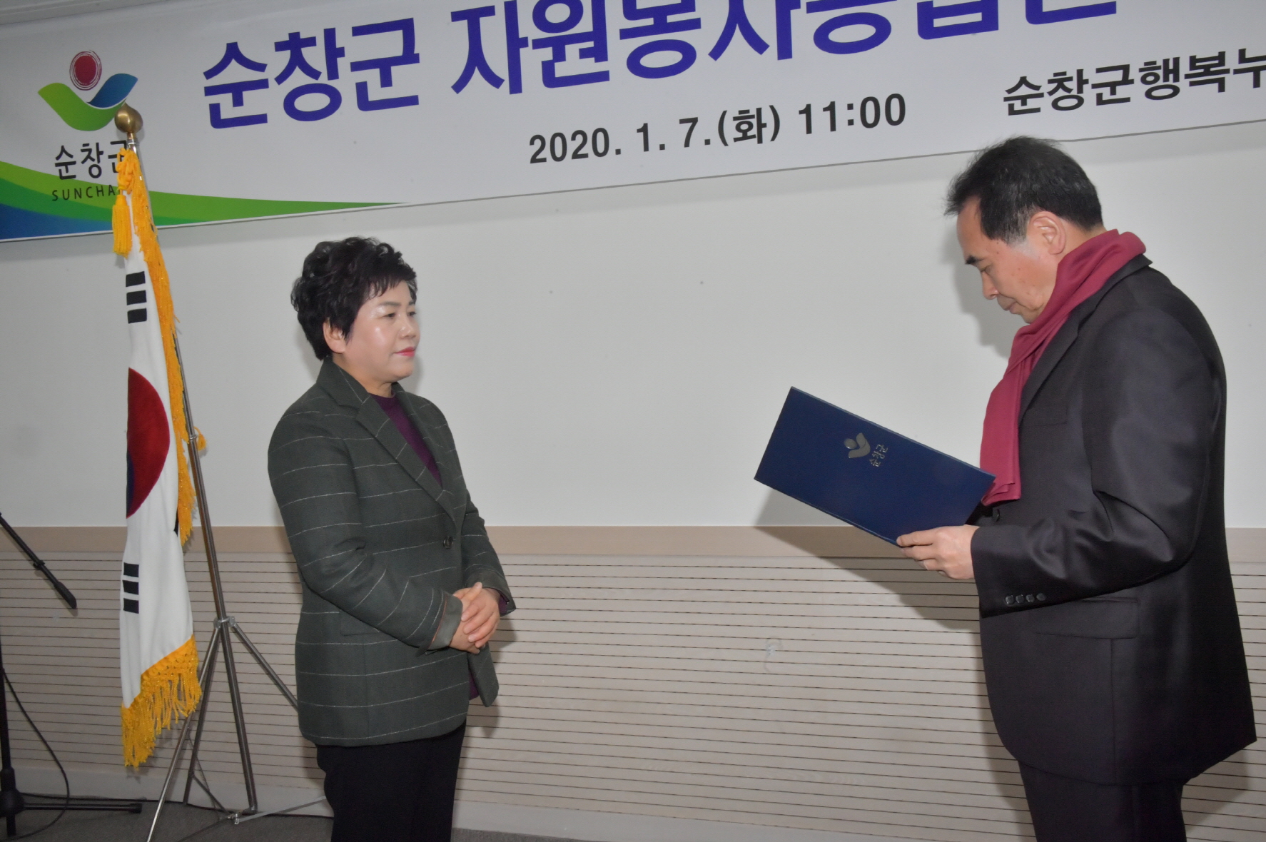 - 7일 순창군 행복누리센터 3층 회의실에서 순창군 자원봉사센터 김삼순 센터장을 위촉하고 취임식을 가졌다. 이날 황숙주 군수, 정성균 군의장 및 시군 자원봉사센터장 등 70여명이 참석한 가운데 임금순 전회장 이임식도 함께 열렸다. 김삼순 신임소장은 10년 넘게 어머니 참봉사회 회장 및 여성단체협의회장, 순창읍지역사회보장협의체 위원 등 지역사회 자원봉사 활동에 활발하게 참여해 왔다. -2020년 1월 7일-